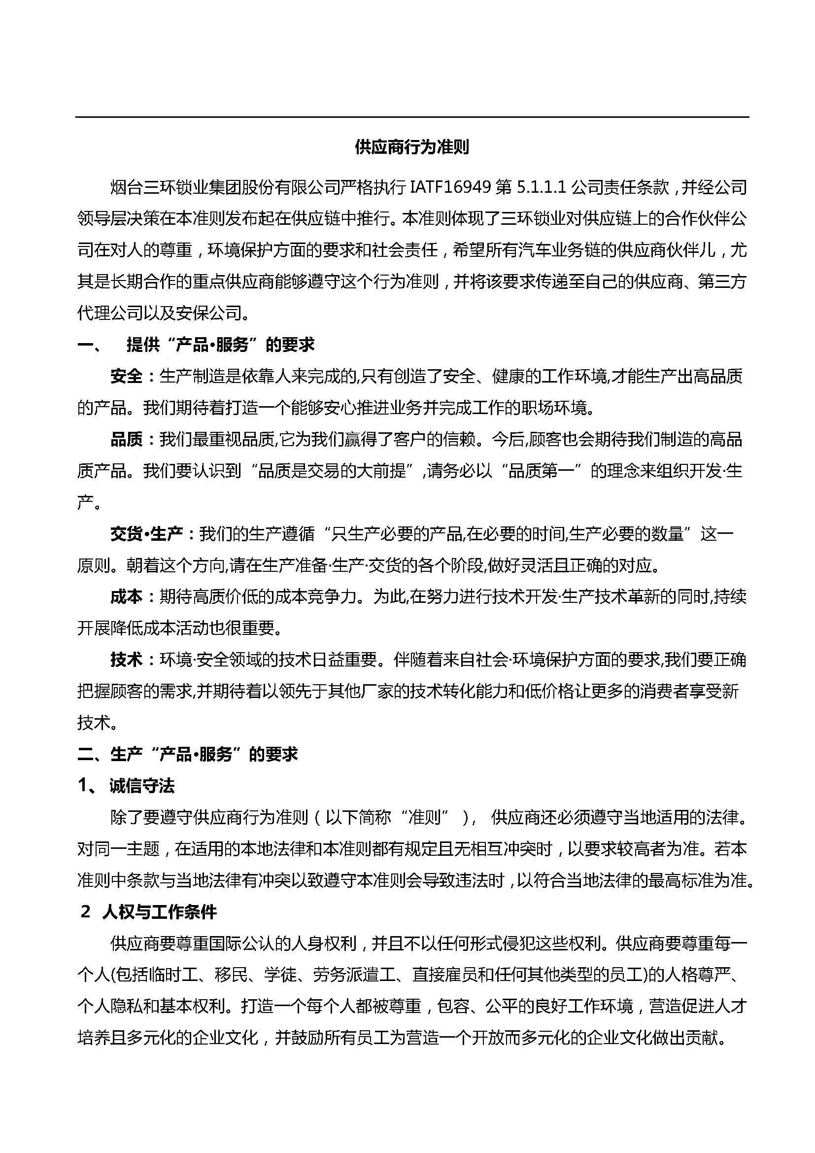 煙臺(tái)三環(huán)汽車鎖供應(yīng)商行為準(zhǔn)則發(fā)布